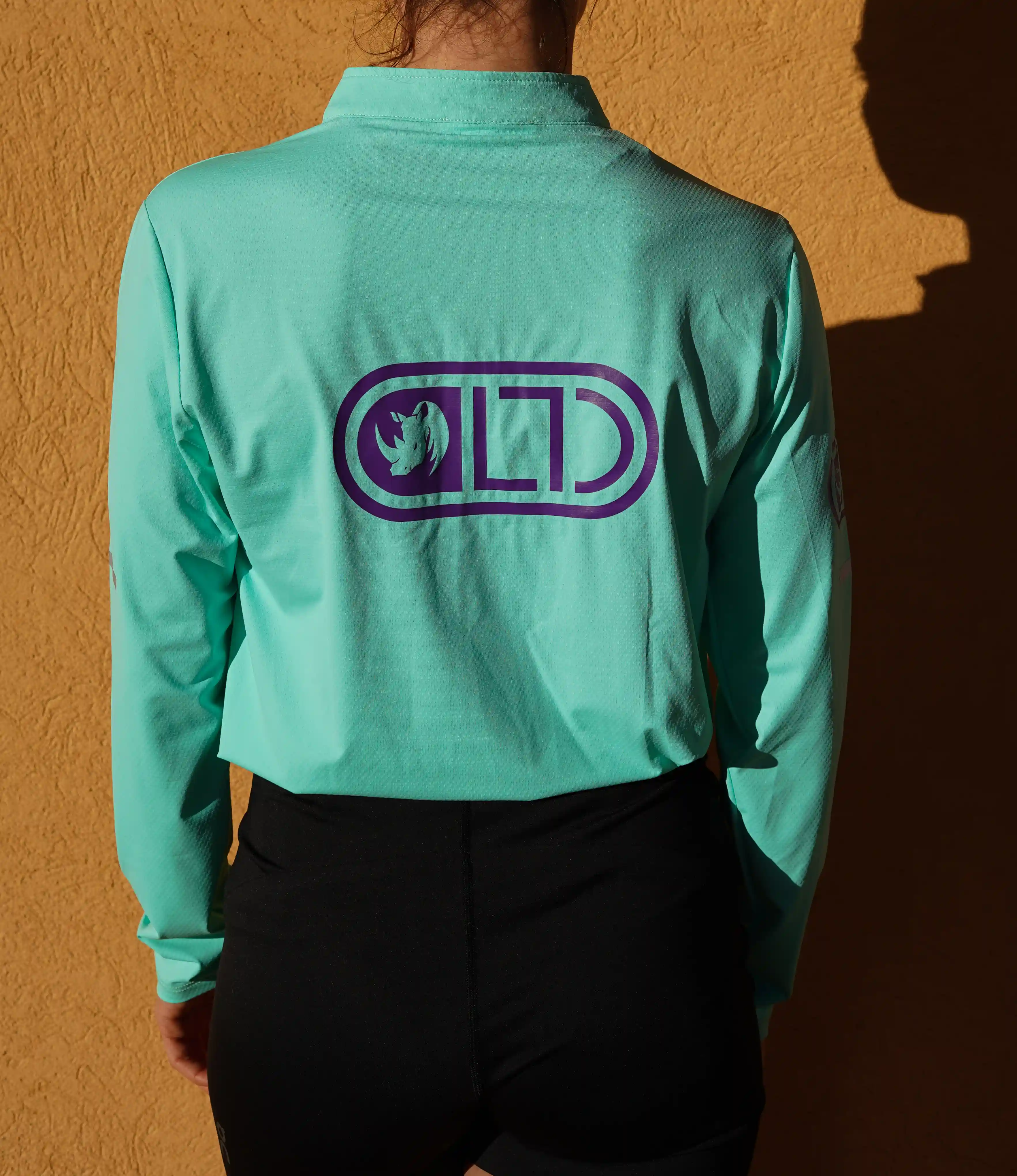 T-shirt manches longues pour femme, léger et respirant, avec demi zip.